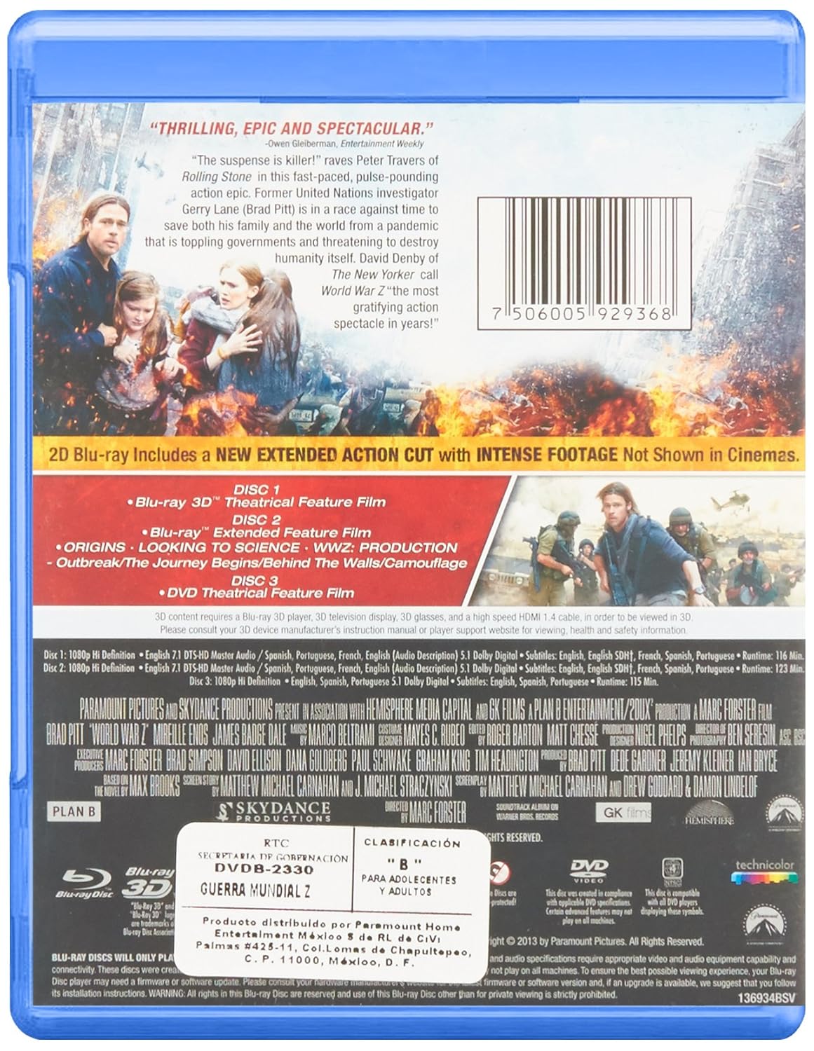 Amazon Com World War Z Extended Action Cut Blu Ray 3d Blu