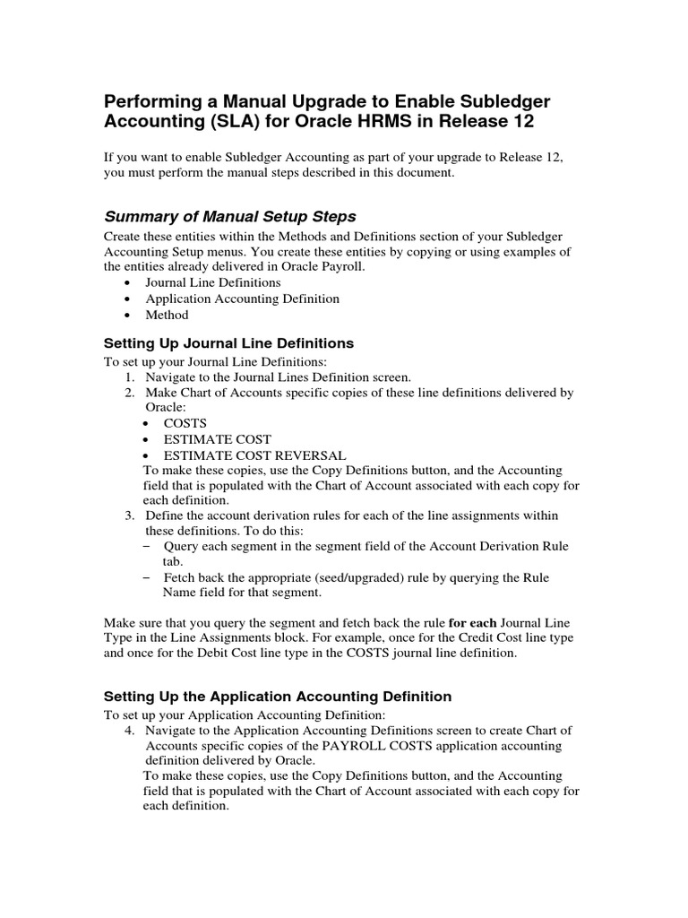 Performing A Manual Upgrade To Enable Subledger Accounting Sla