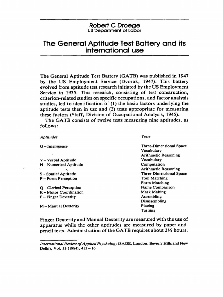 Gatb Manual Dexterity Gatb The General Aptitude Test Battery