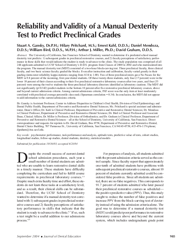 Manual Dexterity Test Dentistry Examples Of Thesis Xdnuwc