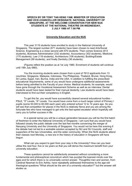 Speech By Dr Tony Tan Keng Yam Minister Nus Home