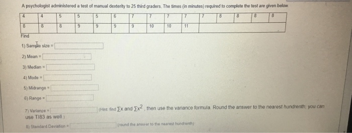Solved A Psychologist Administered A Test Of Manual Dexte