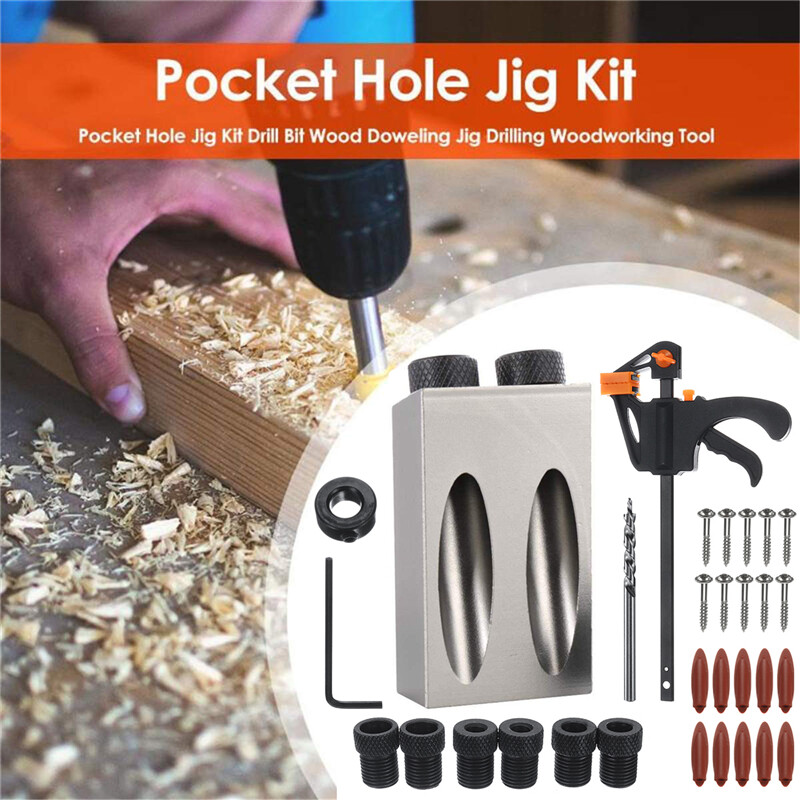 31pcs Diy Pocket Hole Screw Jig Kit 6 8 10mm 15 Degree Angle